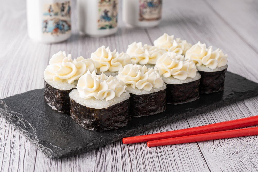 Ролл с огурцом, сливочным сыром и кунжутом.