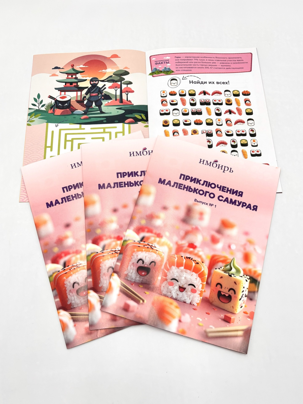 Развлекательный журнал "Приключения маленького самурая" с веселыми ребусами и загадками, раскрасками и кроссвордами, все для того чтобы нашим маленьким покупателям было не только вкусно, но еще и интересно.